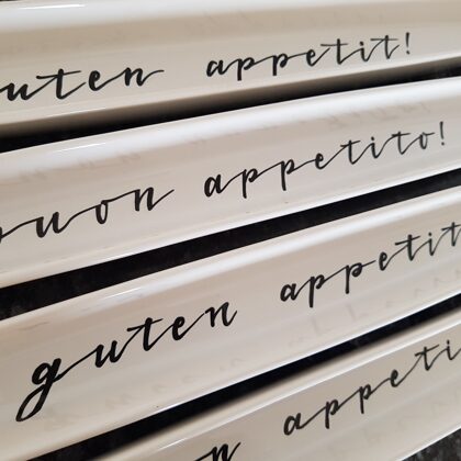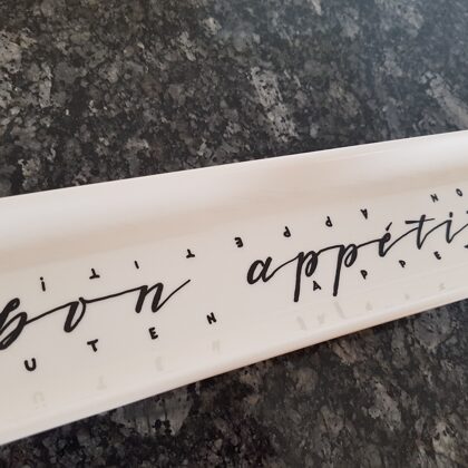 It is well known that the eye eats with you. I offer dishes with handlettering on it to make the moment unforgettable - be it for example the birthday party of grandma, the aperitif with friends or watching your favorite TV series, cozy at home. After all, one should celebrate the festivals as they fall. And when snacking with loved ones, a thought on porcelain reveals itself piece by piece...